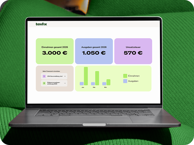 Du bist selbständig und umsatzsteuerpflichtig? Dann hast du sicher Besseres zu tun, als dich mit der Steuer rumzuärgern: Erledige jetzt einfach und zuverlässig deine Buchhaltung, Steuer und Umsatzsteuervoranmeldung mit Taxfix.